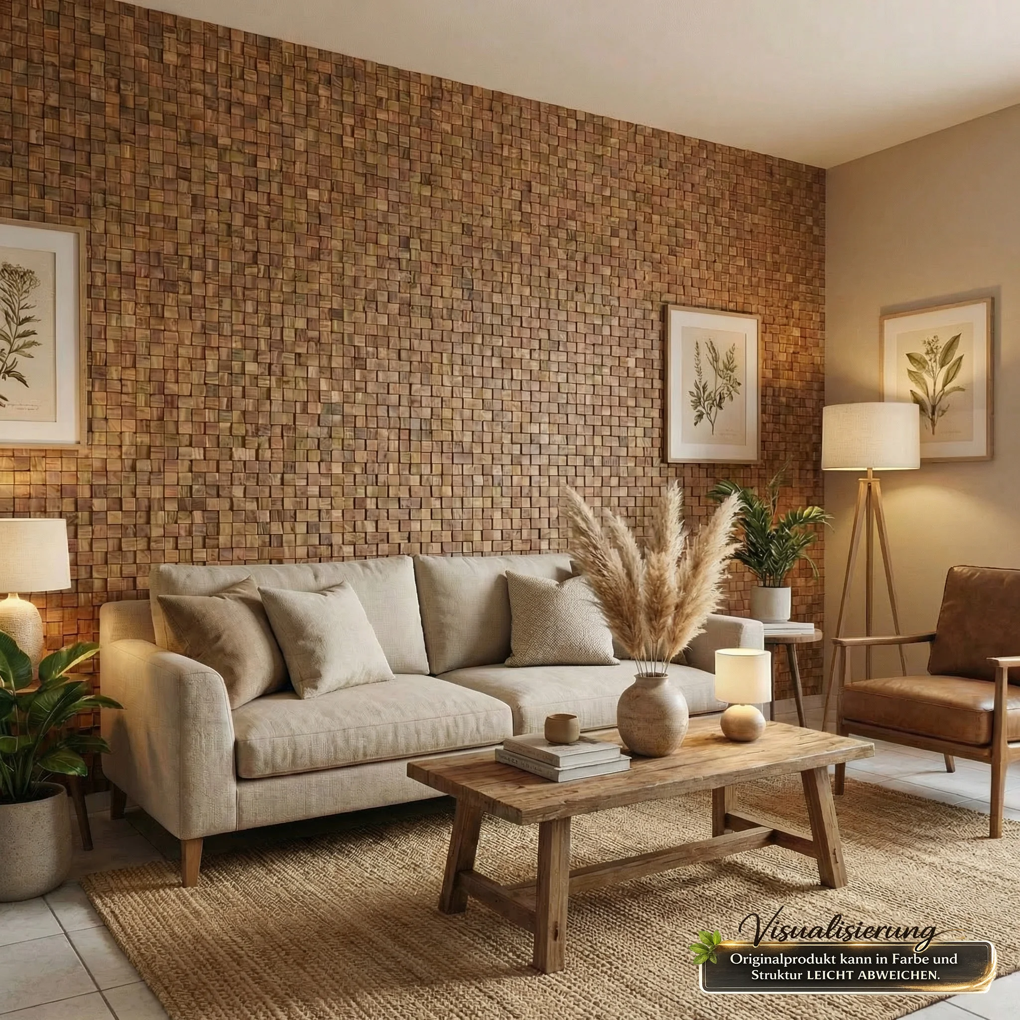 Natürliche Wandgestaltung mit Teakholz Mosaik