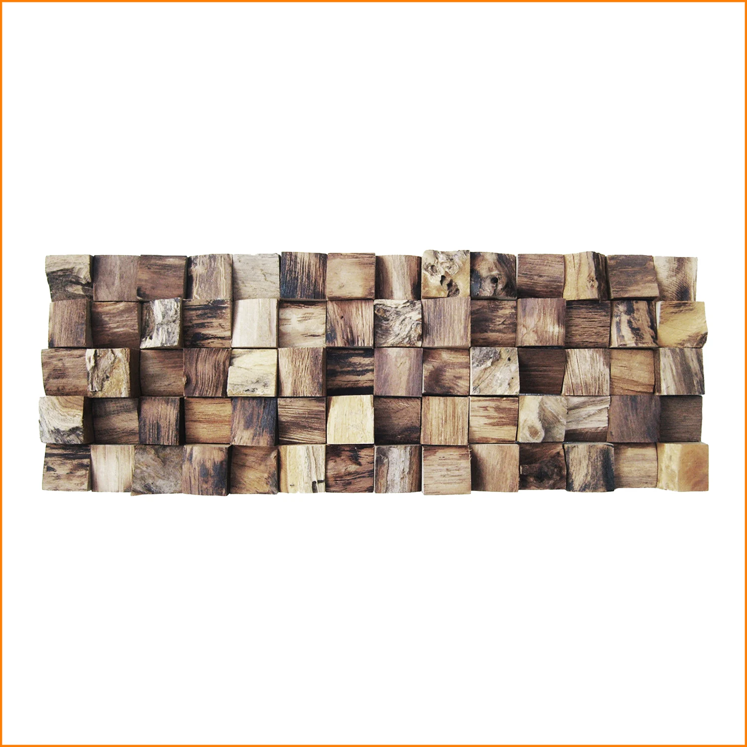 Teakholz Wandpaneele sind dekorative Wandverkleidungen aus echtem Holz, die aus vielen einzelnen Holzstücken zusammengesetzt werden.